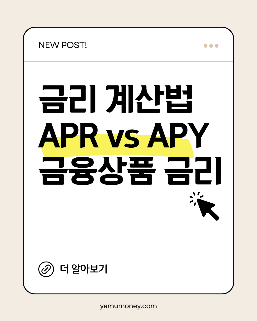 APR과 APY는 숫자는 비슷해 보여도 계산 방식에서 큰 차이가 있습니다. 사회초년생 시기에는 금리 하나하나가 자산 형성 속도를 바꾸는 중요한 변수이니, 상품 선택 전 반드시 표기 방식과 계산 구조를 확인하는 습관을 들이세요.