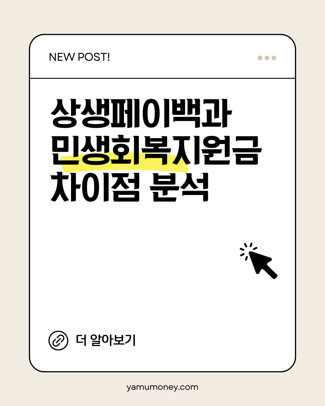 혼동하지 마세요. 두 정책은 다릅니다. 하지만 함께 활용하세요. 더 큰 혜택을 받을 수 있습니다. 민생회복지원금 신청하고, 상생페이백도 신청하세요. 둘 다 받을 수 있습니다. 당신의 권리입니다.