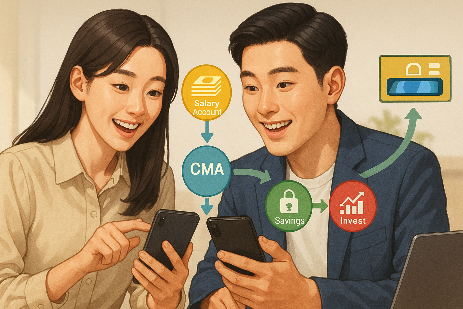 CMA(종합자산관리계좌)는 하루만 맡겨도 이자가 붙고, 자동이체로 사용이 편리합니다. 월급통장에서 CMA로 일정 금액을 자동 이체해두면, 단기 여유자금 관리가 가능해집니다.
