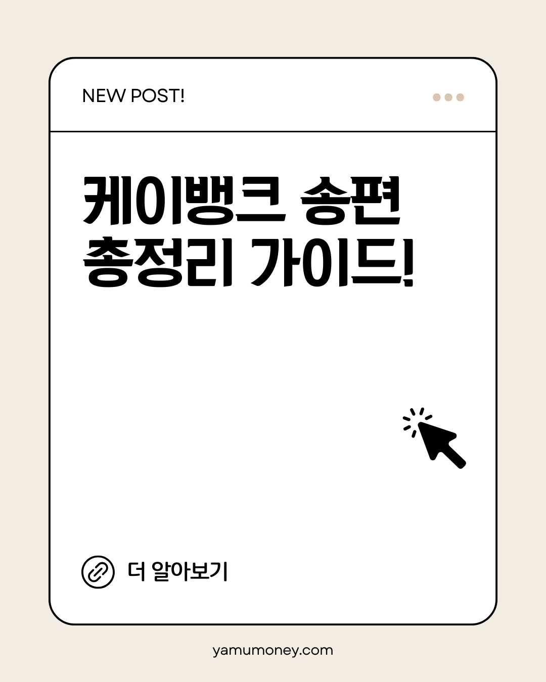 케이뱅크 송편 이벤트는 단순한 이벤트를 넘어 인터넷 금융의 편리함과 혜택을 경험할 수 있는 좋은 기회입니다. 이벤트로 받은 소액이더라도 바로 예금이나 적금에 넣어 복리 효과를 누릴 수 있습니다. 명절 분위기를 즐기면서 실속도 챙기는 똑똑한 금융 생활, 지금 바로 시작해보세요.